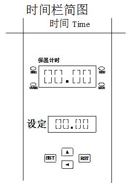 時間欄里有兩組數字屏,上面組是計時屏,下面組是設置屏,顯示設定的時間值。計時屏在溫度沒有達到計時點不計時,四個數字顯示為“00.00”。時間屏和設置屏前兩位為整數,后兩位為小數,中間有小數點。時間單位可以設定為“分鐘”也可以設定為“小時”。