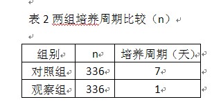 2.2從表2可見兩組試管經培養后,觀察組1天出結果,結果出的快,更好的確保滅菌效果。