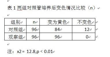 2.1從表1可見兩組對照管經培養后,觀察組全部變為黃色,生物監測合格率高,兩組比較,經統計學分析(x2﹦12.8,p﹤0.01),顯著性差異具有統計學意義。